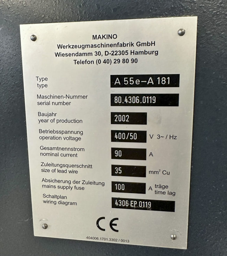 Machine center: MAKINO A55e (CNC0507)